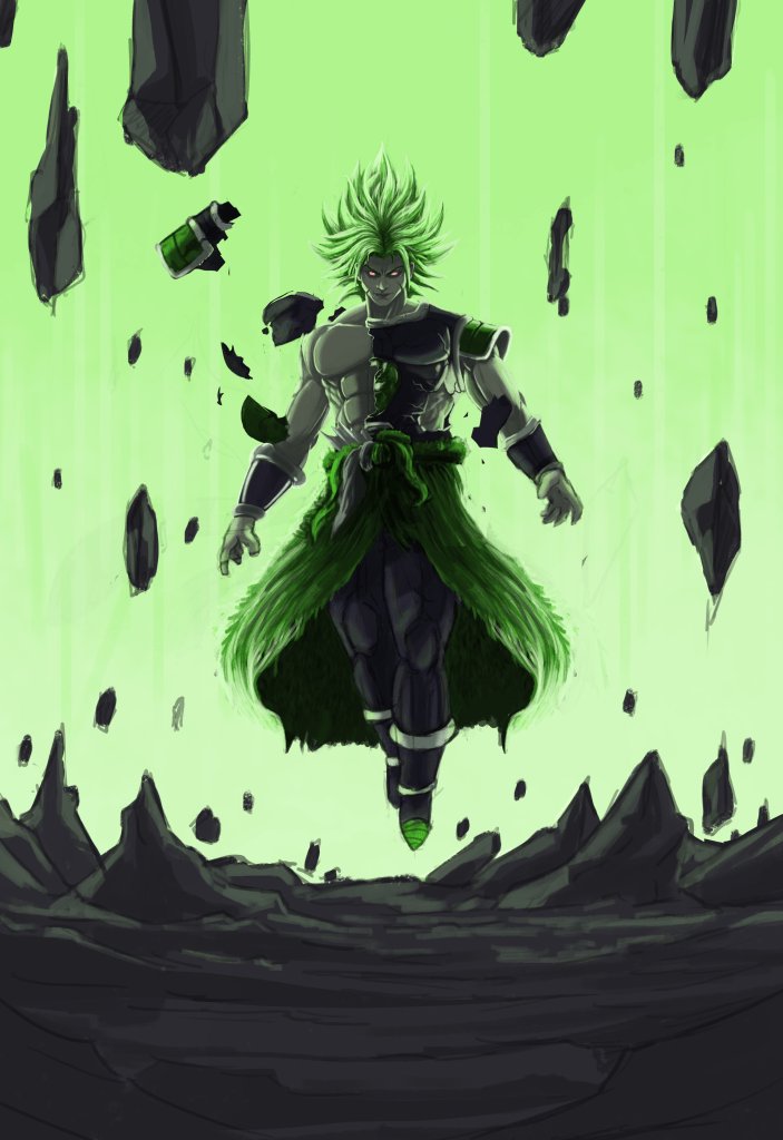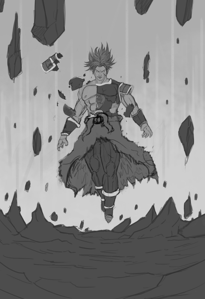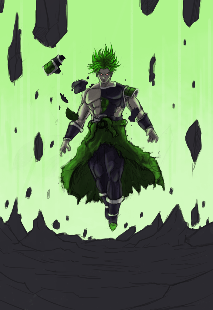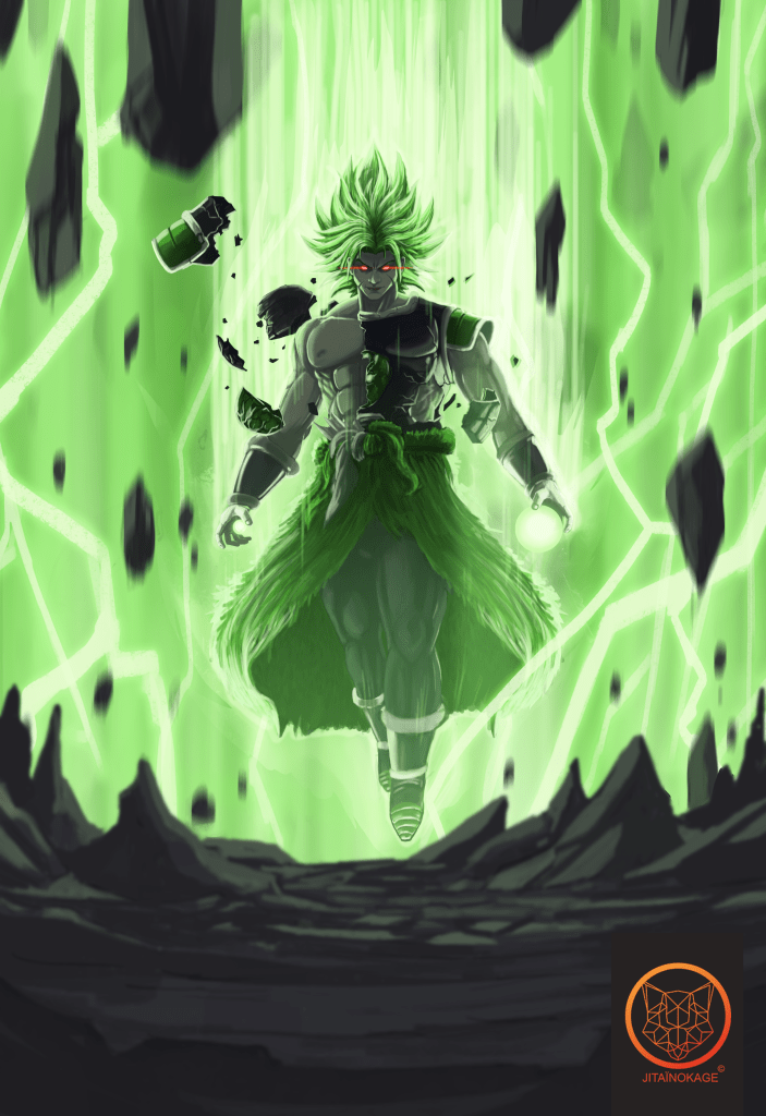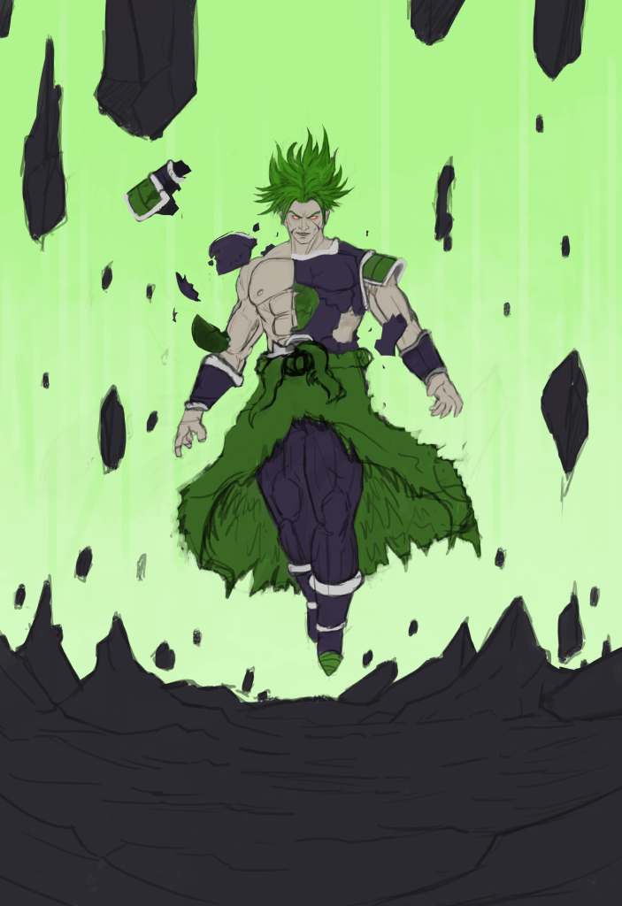 Mission : Réaliser une illustration dans mon style de la transformation en super Sayien Broly, dans le film Dragonball Super : Broly de 2018.