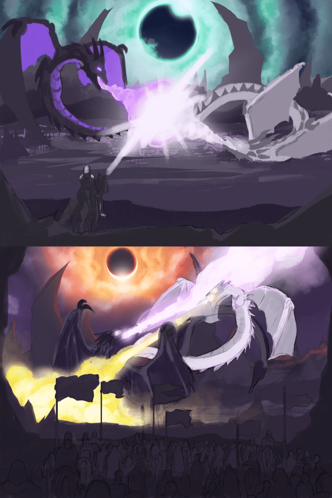 Sous une éclipse, le combat titanesque du Dragon Solaire et du Dragon Lunaire décidera si le monde vivra cent ans de lumière ou de ténèbres.