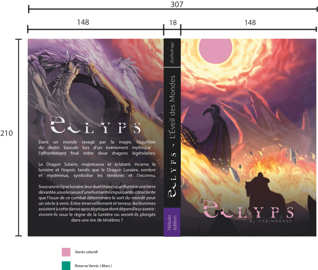 Livraison de la couverture finalisée, optimisée pour l’impression avec les spécificités techniques demandées (réserve vernis mors et vernis sélectif, ajout du dos – 10mm pour 200 pages de 80g environs). Un soin particulier a été apporté à la mise en page et à la préparation des fichiers ( Dpi / CMJN ) pour garantir un rendu optimal à l’impression.