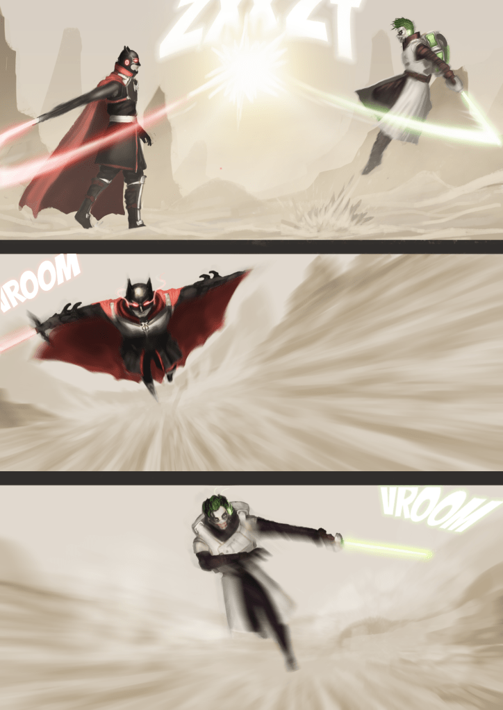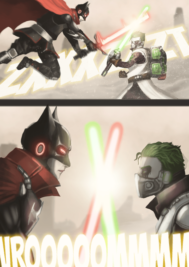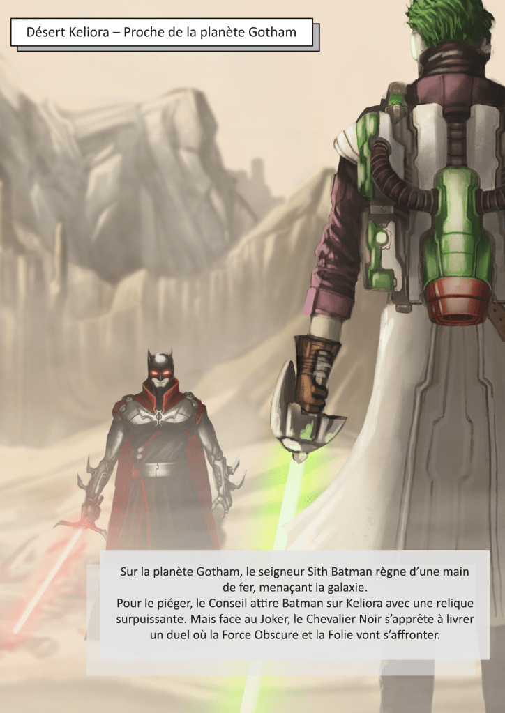 Mission : Réaliser un mashup original et harmonieux entre l’univers sombre de Batman et la galaxie épique de Star Wars, en préservant l’essence et l’identité de chaque franchise.