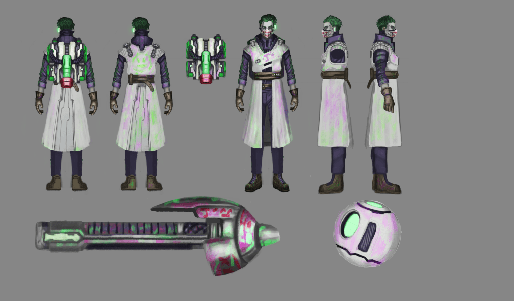 Concepts finaux + développement du design de chaque protagoniste sous plusieurs angles, afin de conserver leurs caractéristiques emblématiques tout en les adaptant au mashup.